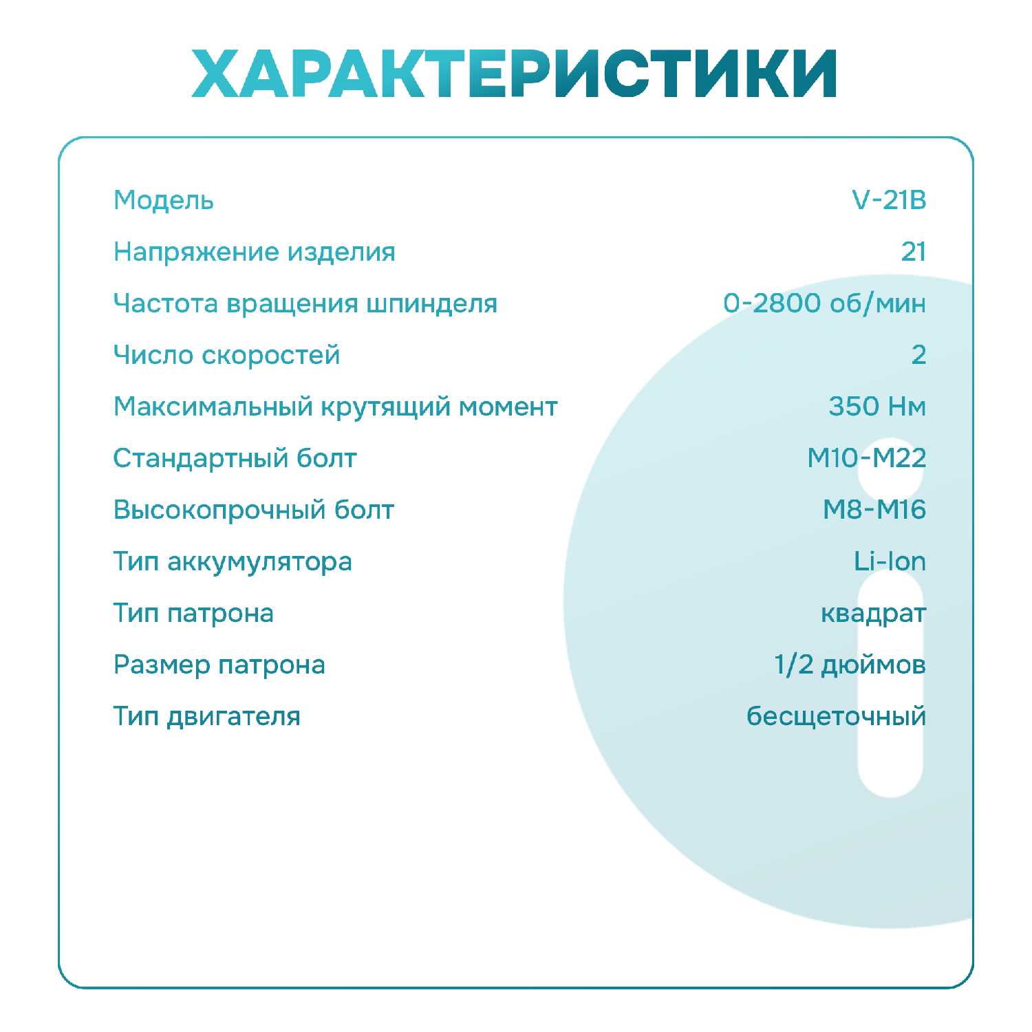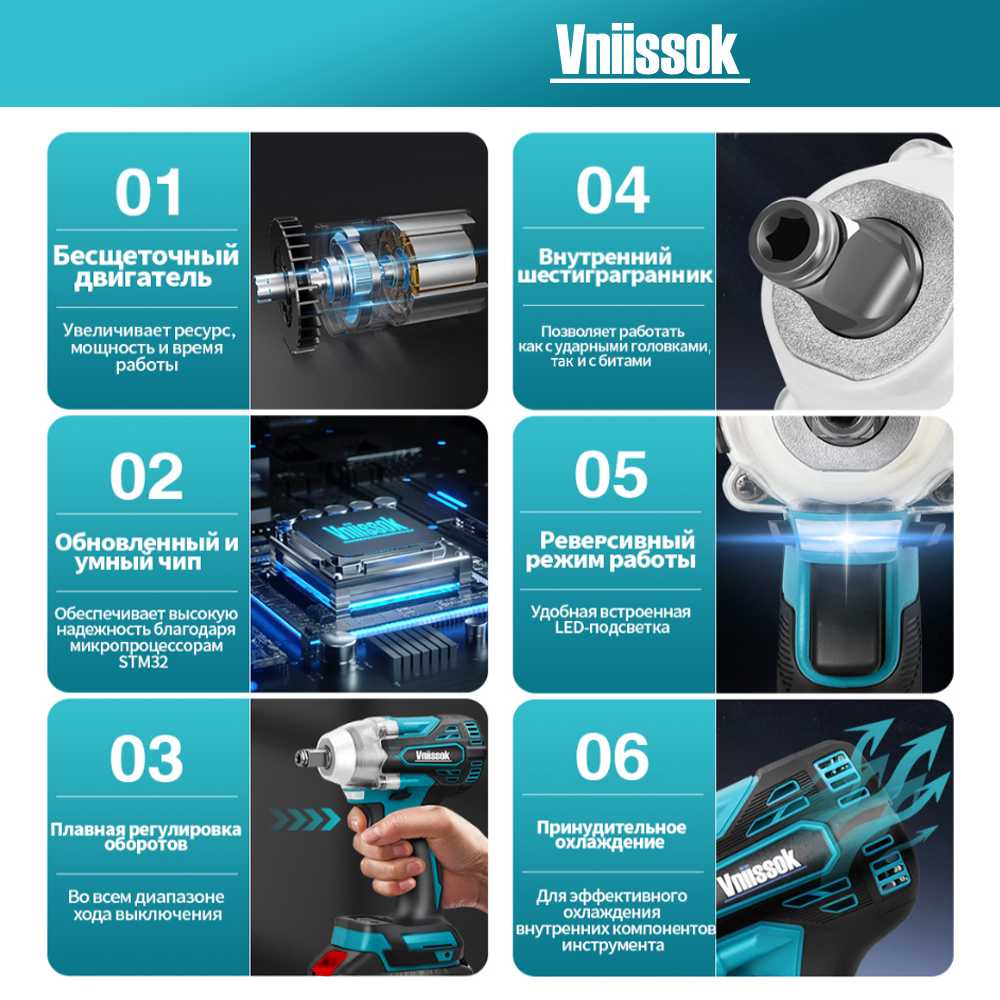 Характеристи Vniissok Бесщеточный ударный гайковёрт (2акб)