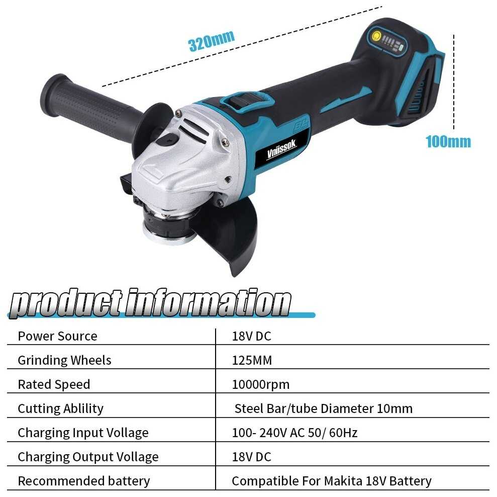 Очень понравилась сама УШМ. Пластик ровный плотный без наплывов, Кейс ко всему прочему теперь брендированный и из более плотного и не колючего пластика, сам кейс был в коробке тоже хорошего качества. Уже с кейса положительное впечатление. Комплект был полным, инструкция на русском надписи на самой машинке есть на русском , наклейки приклеены все ровненько . Регулировка оборотов 3х ступенчатая электронная, плавный пуск. Батарея отличается также повышенным качеством емкость 3500 , возможно что раскачается до 4000. Сама выполнена из качественного пластика и с прорезиненными вставками со всех сторон с индикатором заряда, она чуть больше из-за этого аналогичных, но в руках она ощущается как более качественная даже в сравнении с более дорогой и известной фирмой не будем называть какой… Это конечно не зверюга как сетевая для мелких работ идеальна. В целом если ресурс не подкачает , покупкой остался доволен. Могу смело рекомендовать к покупке.