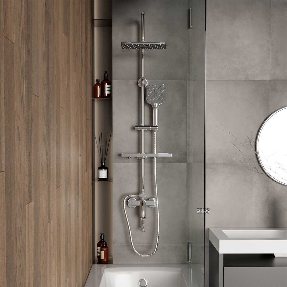 | Комплектация : | верхний душ, держатель лейки, дивертор, душевая стойка, душевая штанга, лейка, набор эксцентриков, отражатель, полочка |
