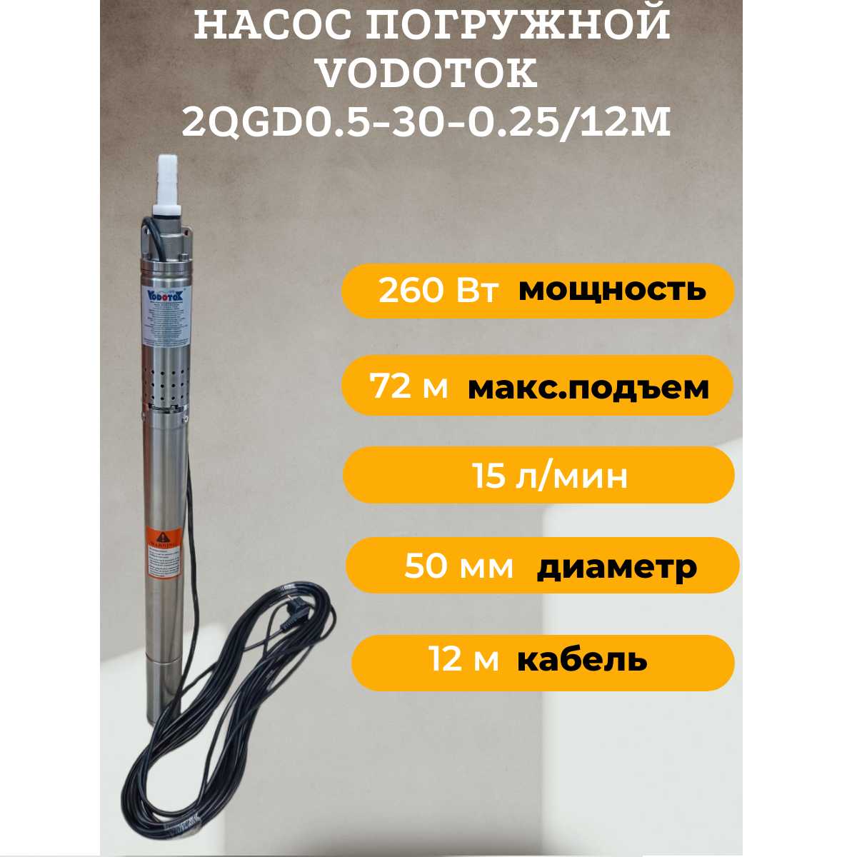 Характеристи Vodotok 2QGD0.5-30-0.25/12m (2QGD0.5-30-0.25/12m)
