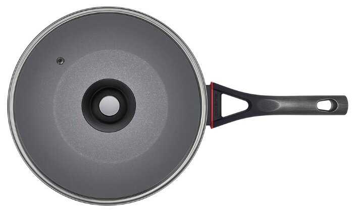 Характеристики:- материал: алюминий форма круглая с антипригарным покрытием стеклянная крышка подходит для индукционных плит толщина дна 5 мм
