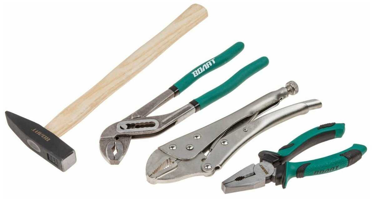 - + отличный набор, радует что всего по не многу ,плоскогубцы, зажимы, и молоток ,с верхней части ничего не выпадает,всё как нужно,что бы в тачке возить на всякий случай. Или для домашних нужд.