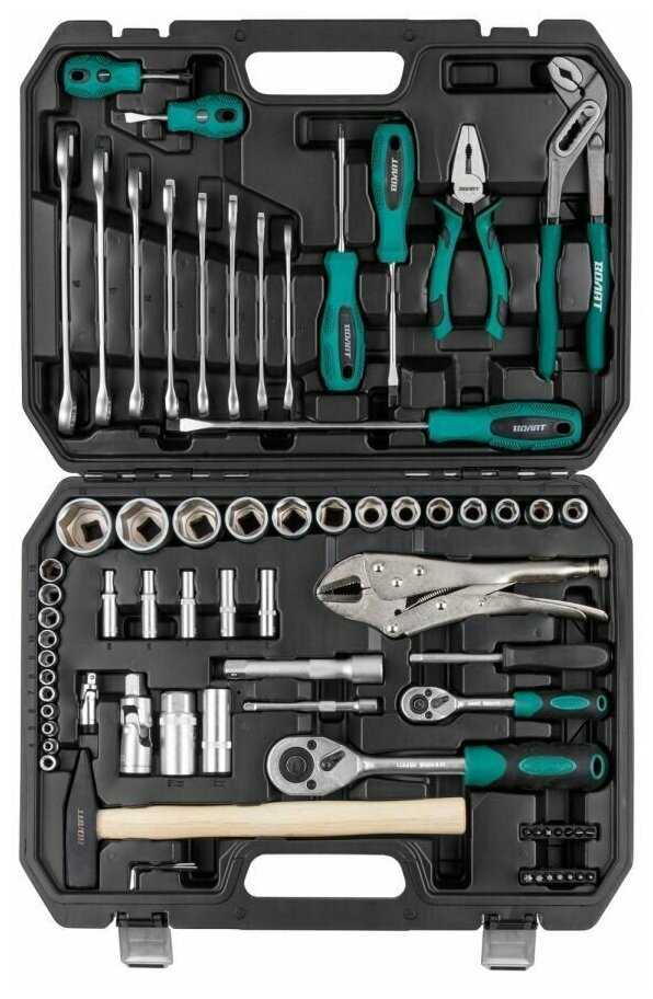 Целевая аудитория продукта — автовладельцы, которым требуется мобильный набор для экстренного ремонта в дороге, и домовладельцы, предпочитающие иметь под рукой универсальный комплект для бытовых нужд. Отдельных похвал заслуживает комплектация: наличие молотка, пассатижей и двух трещоток избавляет от необходимости докупать инструменты отдельно. Но если вы планируете активное использование в условиях мастерской или строительства, стоит рассмотреть варианты с профессиональной маркировкой.