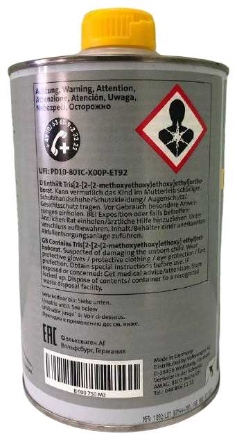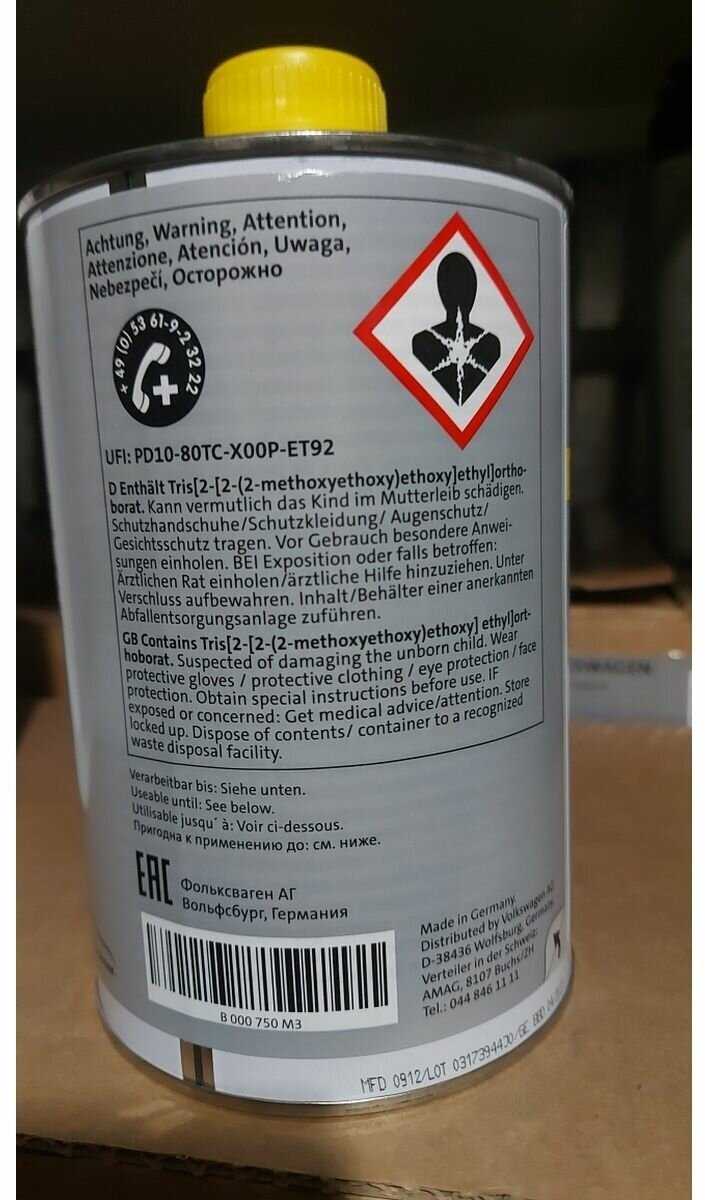 Продукт предназначен для всего модельного ряда концерна VAG: Volkswagen (Polo, Passat, Tiguan), Skoda (Octavia, Yeti, Karoq), Audi (A1, Q5, A5). Владельцы этих автомобилей единогласно подтверждают корректную работу систем после замены. Жидкость особенно рекомендуется для автомобилей, находящихся на гарантийном обслуживании у официальных дилеров, где требуется строгое соблюдение регламентов. -