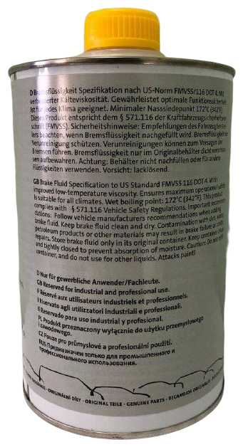 Жидкость соответствует стандарту DOT 4 и содержит специальные присадки, предотвращающие окисление и коррозию компонентов тормозной системы. Благодаря сбалансированному составу она сохраняет стабильную вязкость в широком температурном диапазоне. Многочисленные тесты подтверждают устойчивость к образованию пузырьков и поддержание оптимального давления в системе. -