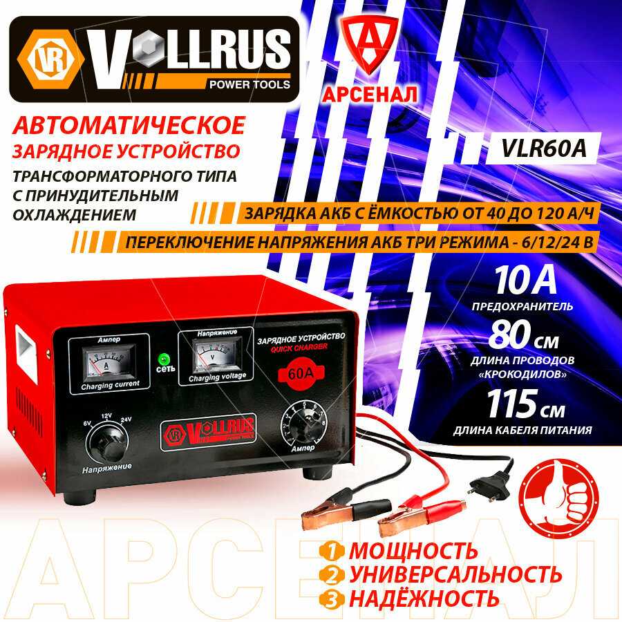 Отзывы о Зарядное устройство VOLLRUS 40А (для АКБ 40-120 А/ч), 6/12/24 В