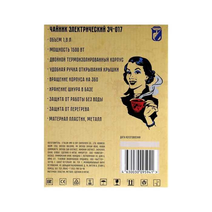 Характеристи ВОЛЖАНКА Чайник (ЭЧ-017)