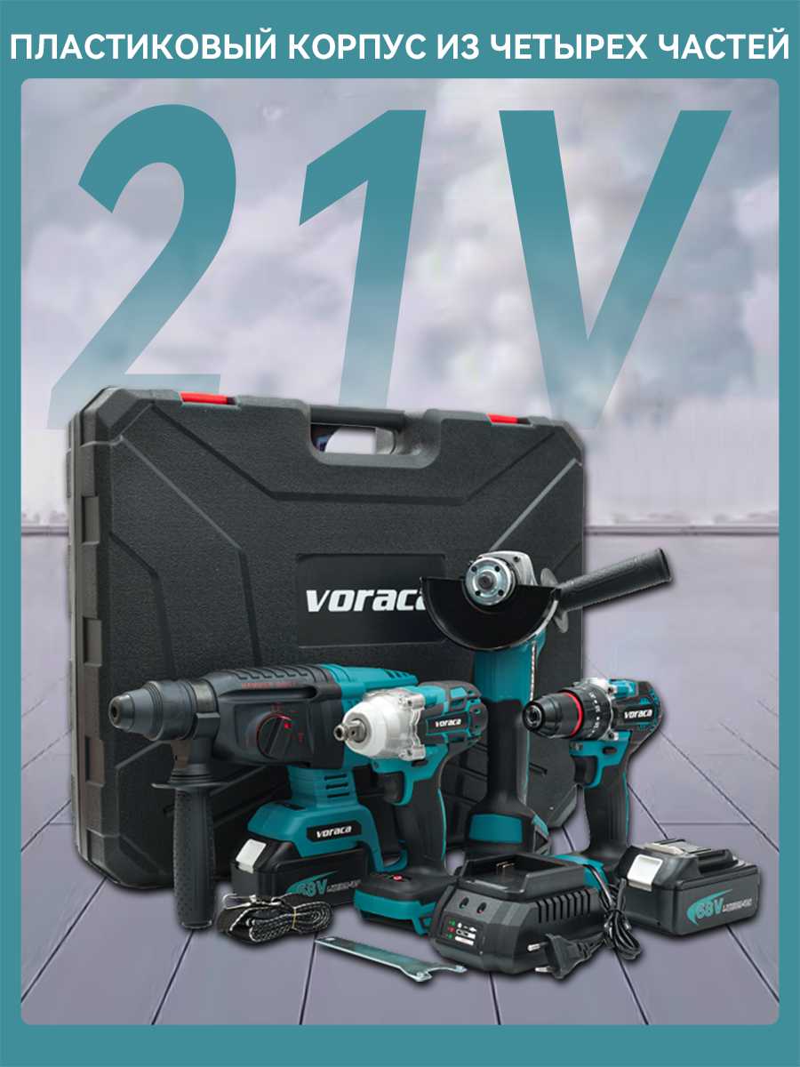- + отличный набор, батарея держит долго, мощность норм, муж в восторге, подходит для профессиональной деятельности.