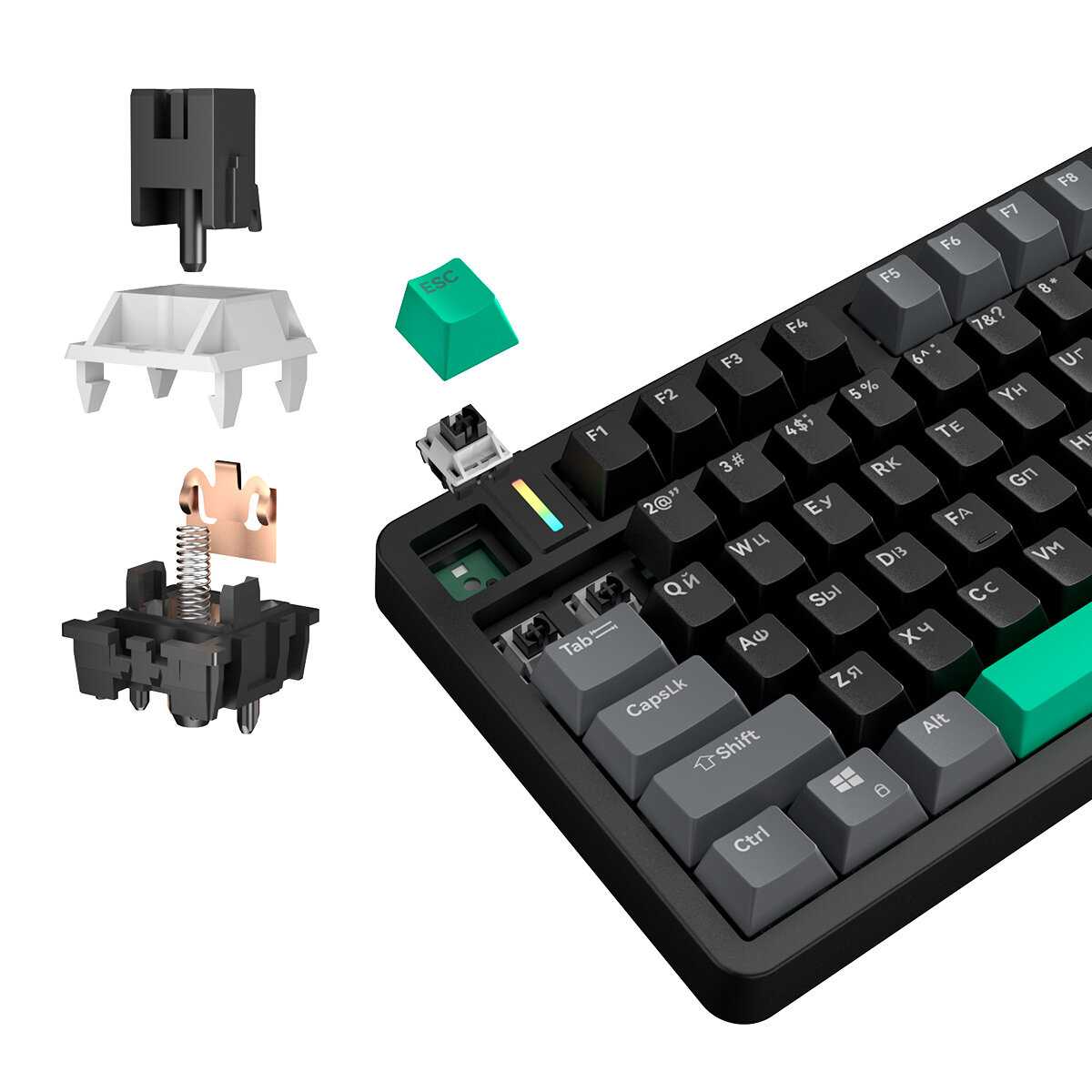 Отличная клавиатура, точно советую к приобретению за эти деньги (покупал примерно за 4 т.р.). Свитчи панда чёрные очень тихие, нажимаются мягонько, смазаны с завода и естественно с хот свапом. Клавиатура на гаскетмаунте, внутри есть шумка и виброизоляция также изначально, это радует. Подсветка ргб, есть много режимов. В комплекте есть запасные свитчи и зелёные клавиши, при покупке думал, что они уже установлены. В целом клавой доволен, выглядит и звучит очень качественно.