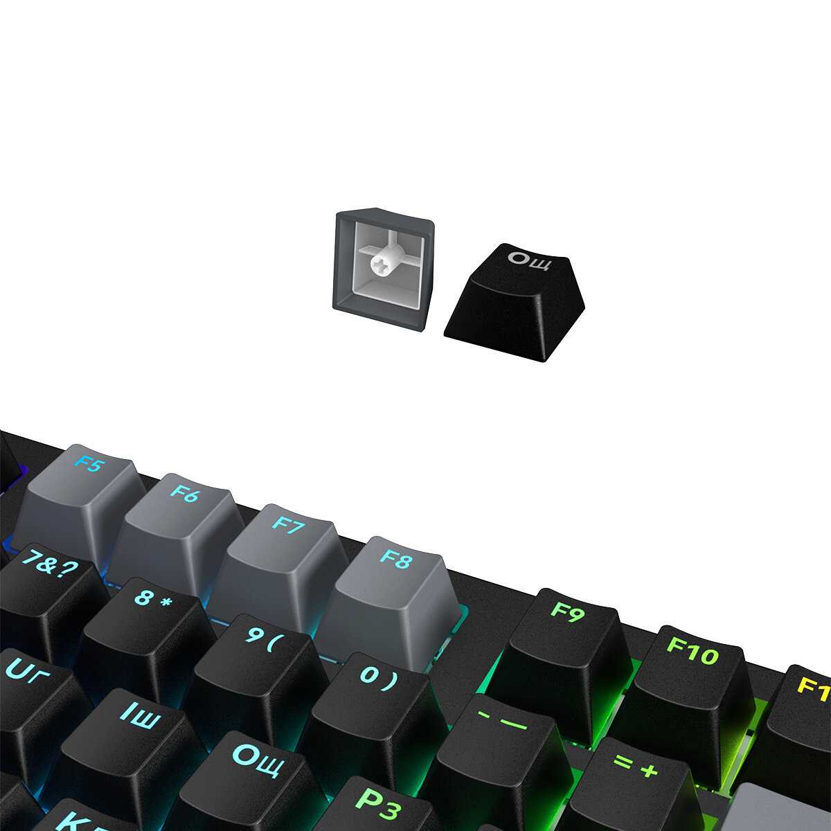 - + Красивая и компактная механическая клавиатура, много режимов подсветки, что делает использование в разы приятнее