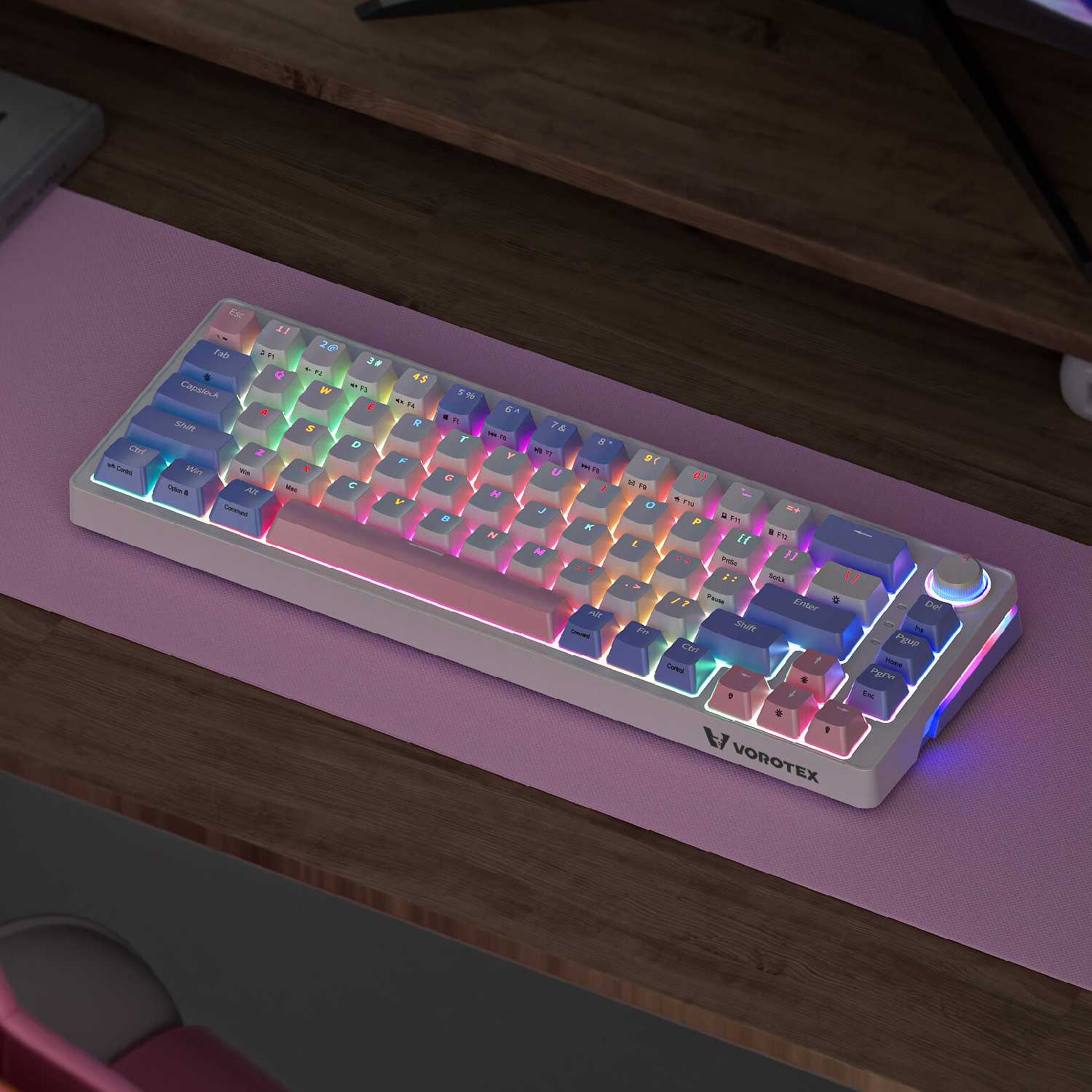 - Кейкапы с двойным литьем (PBT) не истираются и устойчивы к потускнению от UV-лучей.