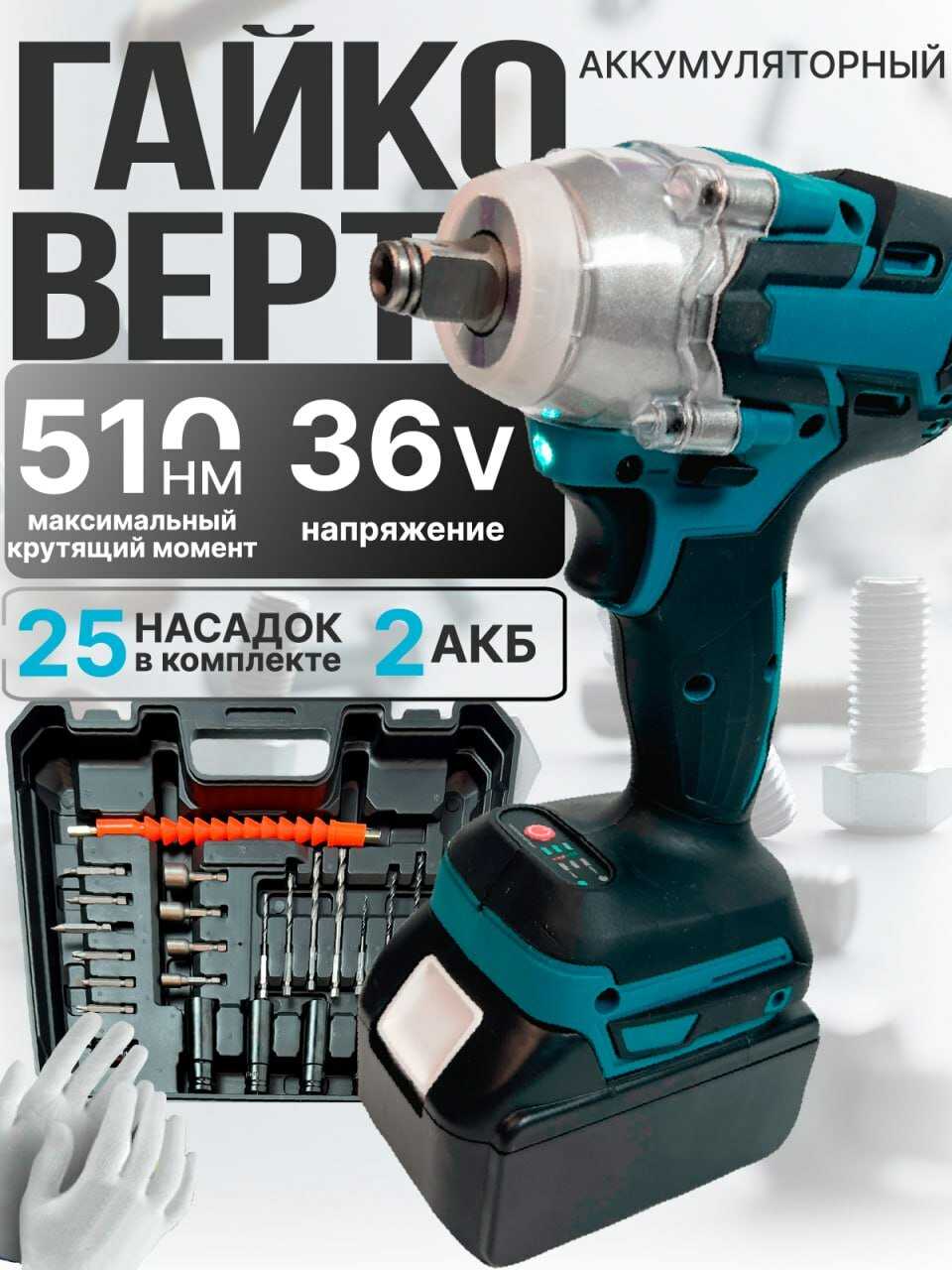 Отзывы о Гайковерт аккумуляторный ударный /3000 уд. мин/2 АКБ/25 насадок в кейсе