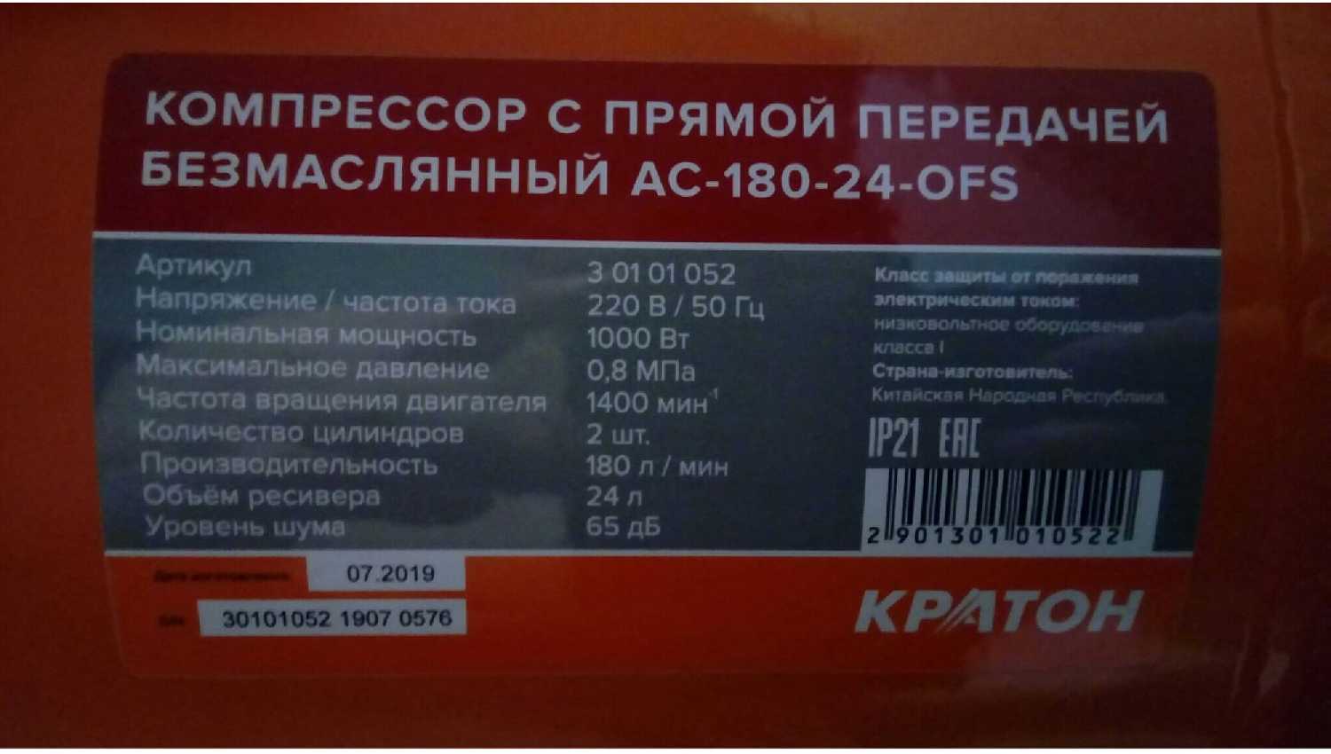 Кратон Компрессор безмасляный (AC-180-24-OFS)