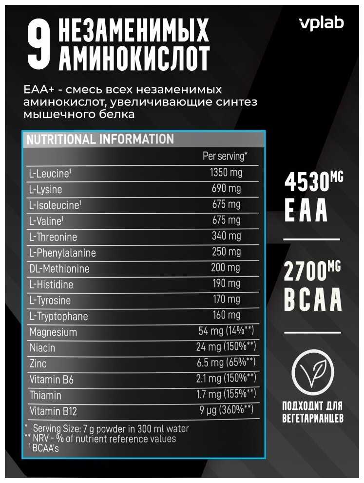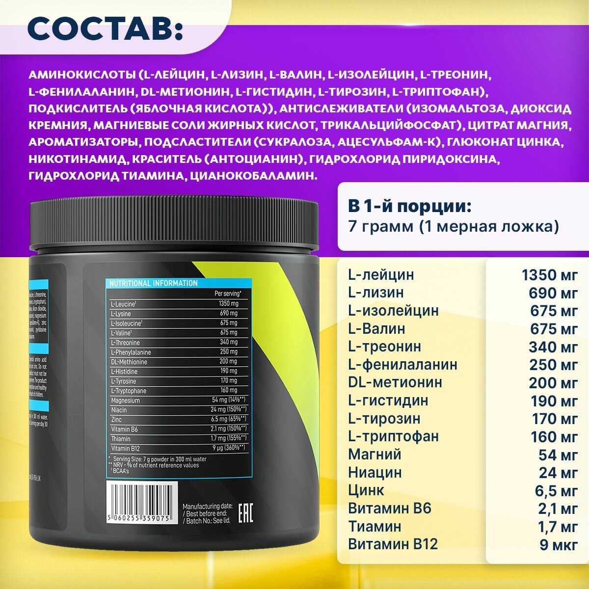 Основной ингредиент : | валин, гистидин, изолейцин, лейцин, лизин, метионин, тирозин, треонин, триптофан, фенилаланин |