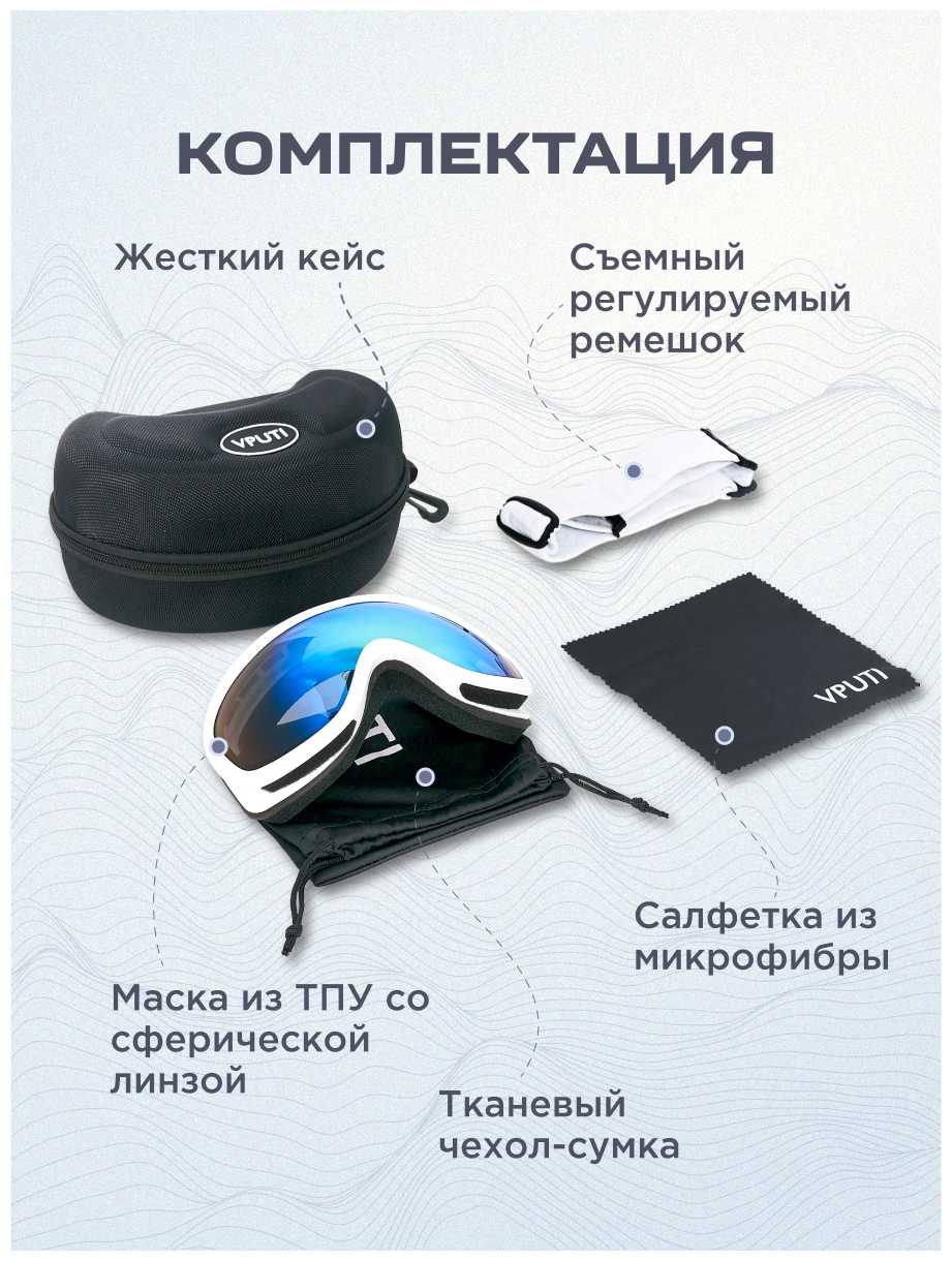 Особенности : | УФ-защита, антибликовое покрытие, вентиляция, защита от запотевания, ношение поверх очков, поляризационный фильтр |