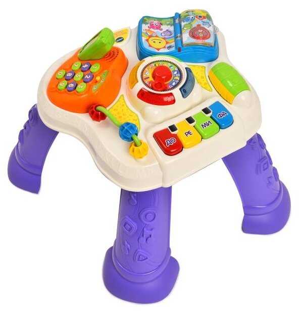 - + Ребенок учится стоять , благодаря столику. Приятные мелодии и несколько интерактивных зон