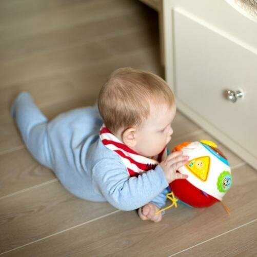Мой деть 10 мес пока боится , игрушка шумная и большая , в руки ребенку не взять