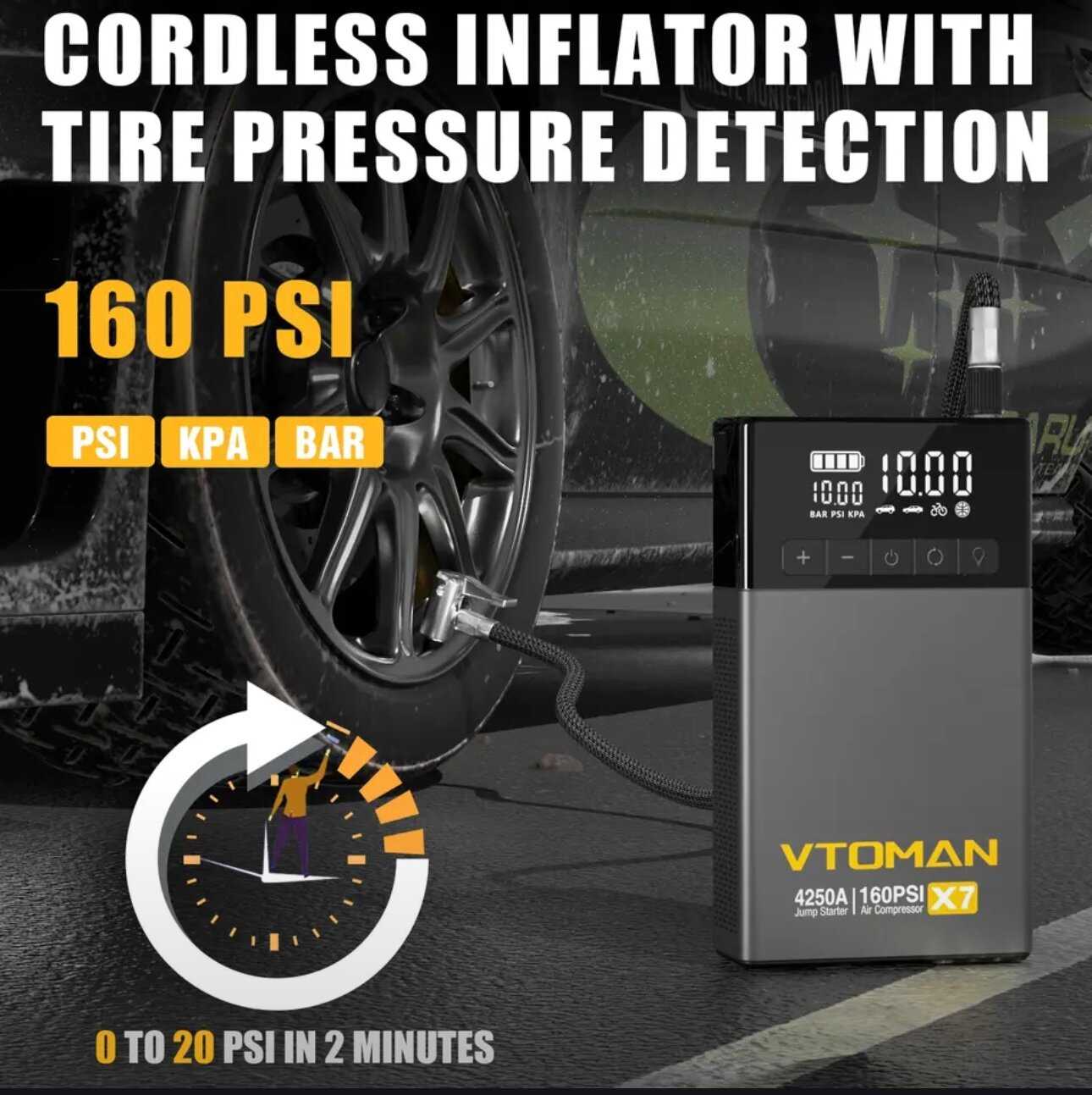 Отзывы о Пусковое портативное устройство VTOMAN бустер с компрессором 20000mAh 4250A