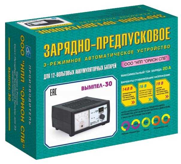 Вымпел 30 - это зарядное устройство для автомобильных аккумуляторов. Оно предназначено для подзарядки и поддержания заряда аккумулятора автомобиля. Работает оно по принципу пульсирующей зарядки, что позволяет не только быстро и эффективно зарядить аккумулятор, но и продлить его срок службы.