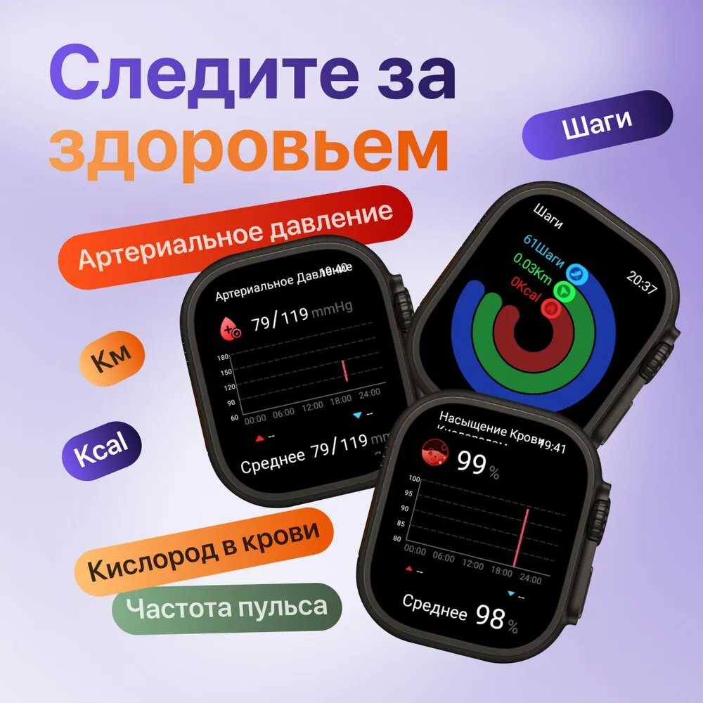 Часы классные, похожие на новые apple watch. использую две недели. можно настроить свой циферблат с любой фотографией, много разных установлено. Яркий экран, выше половины даже яркость не делаю, яркий ремешок. но не очень удобный, рука под ним потеет. измеряют пульс, давление, насыщение крови кислородом. в случае если телефон разрядится часы есть под рукой. разряжаются за день, а при активном использовании за 2-3 часа. Но так как это часы, и стоят они довольно дешево в сравнении с телефоном, то никаких претензий нет. отличное дополнение к телефону.