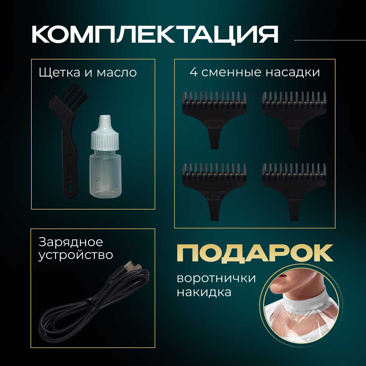 - + в подарок положили накидку и воротники для стрижки