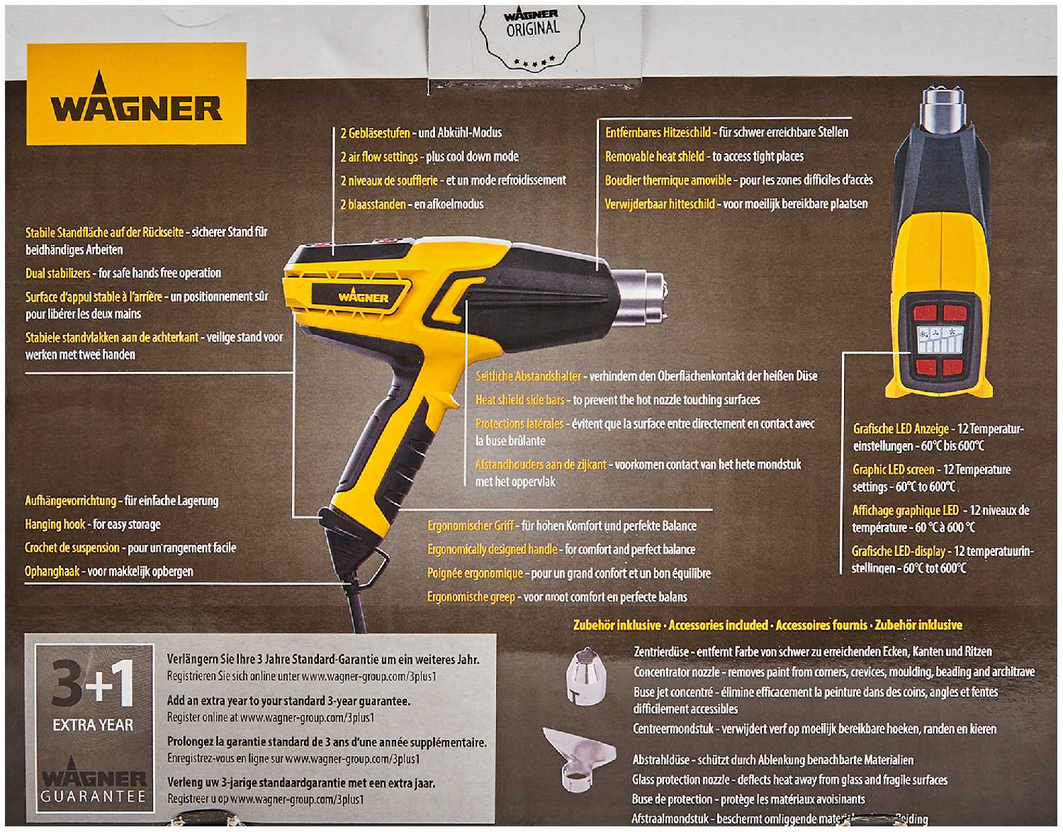 - + Фен мощный. Брали для снятия старой краски с деревянных рам. Очень много слоёв. Справился легко. Не тяжелый.