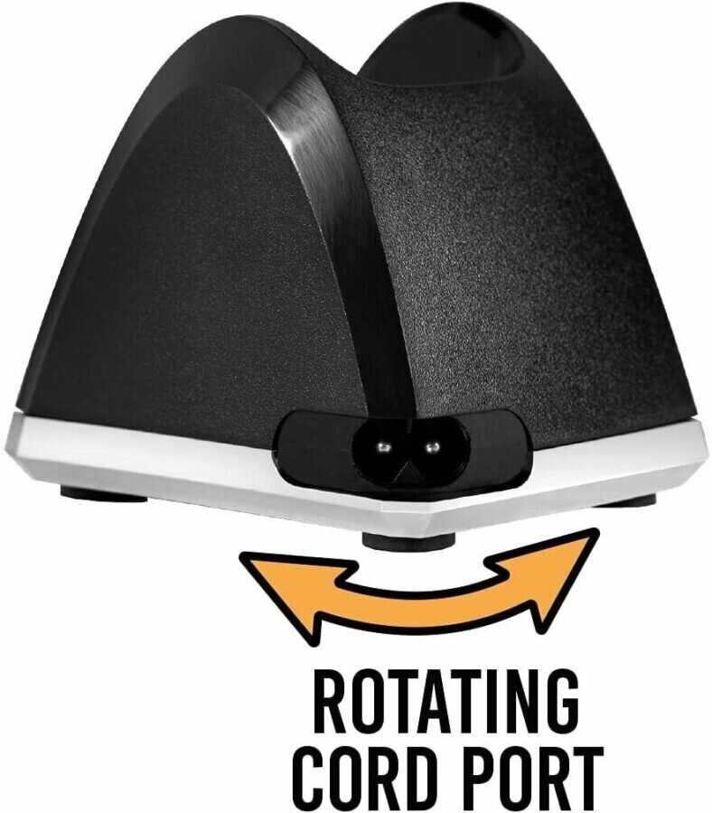 - + Быстрая зарядка. Шнур поворачивается на 90 градусов. На столе стоит надёжно.