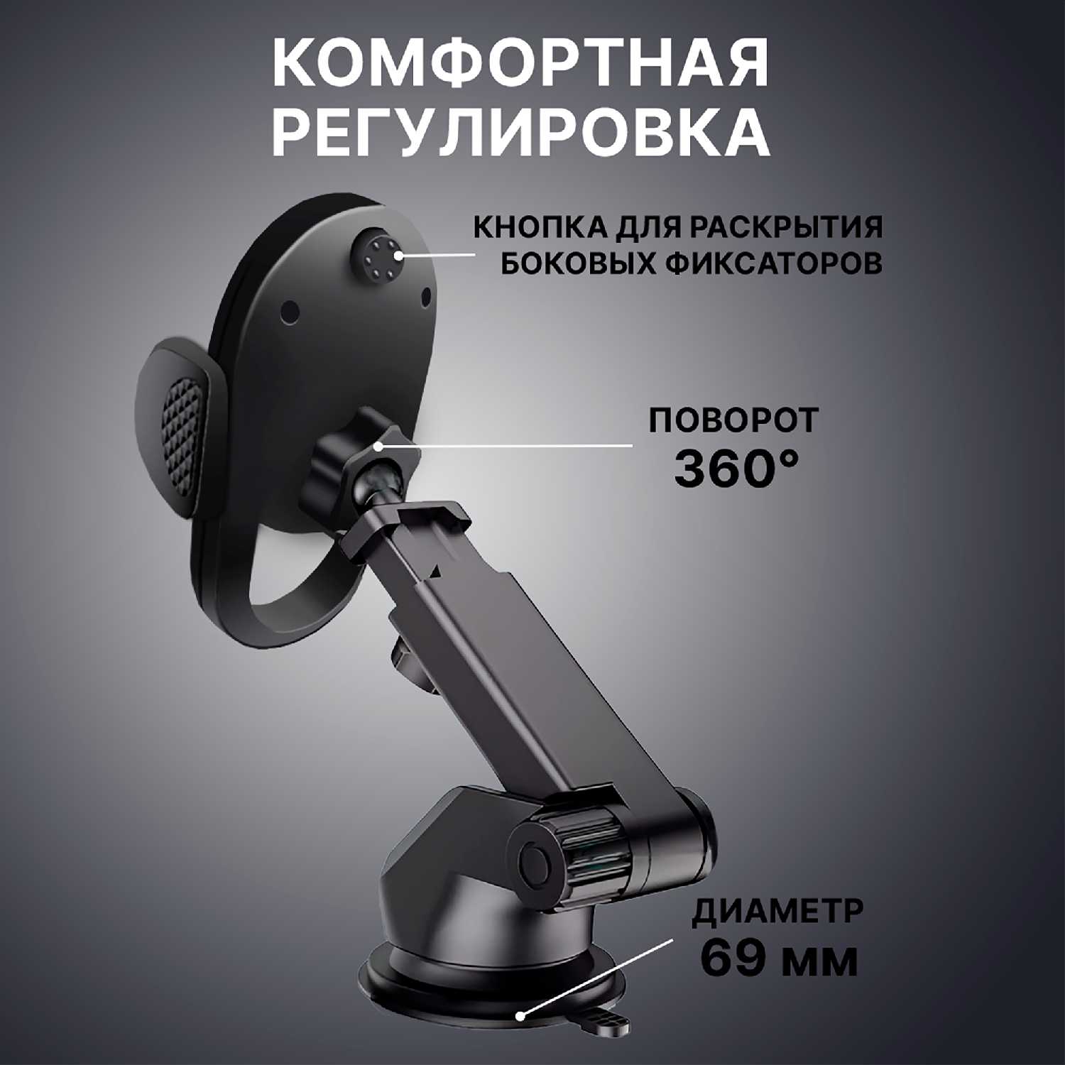 - + удобный: поставить и забрать телефон - легко. Не нужно выворачивать телефон из держателя, чтобы забрать. Отлично держится на стекле.