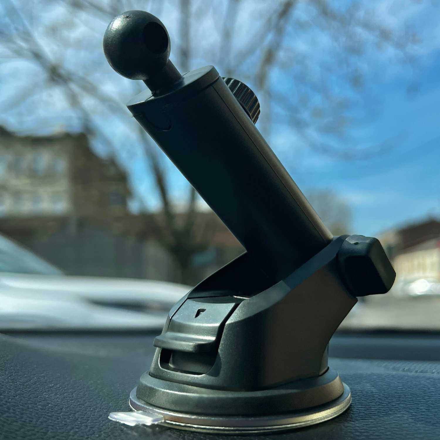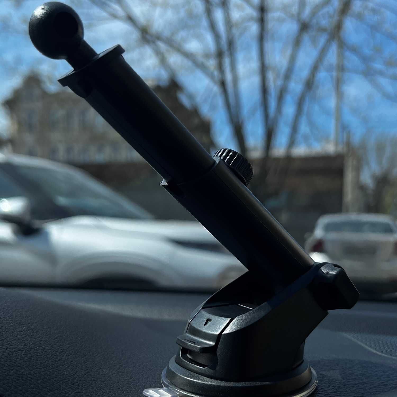 - + Подошел как родной, диаметр шара примерно 16 мм. Заменил держатель, прослуживший пару лет. Сочленения плотные, не шатается после установки на лобовое стекло, на присоске клейкий состав.