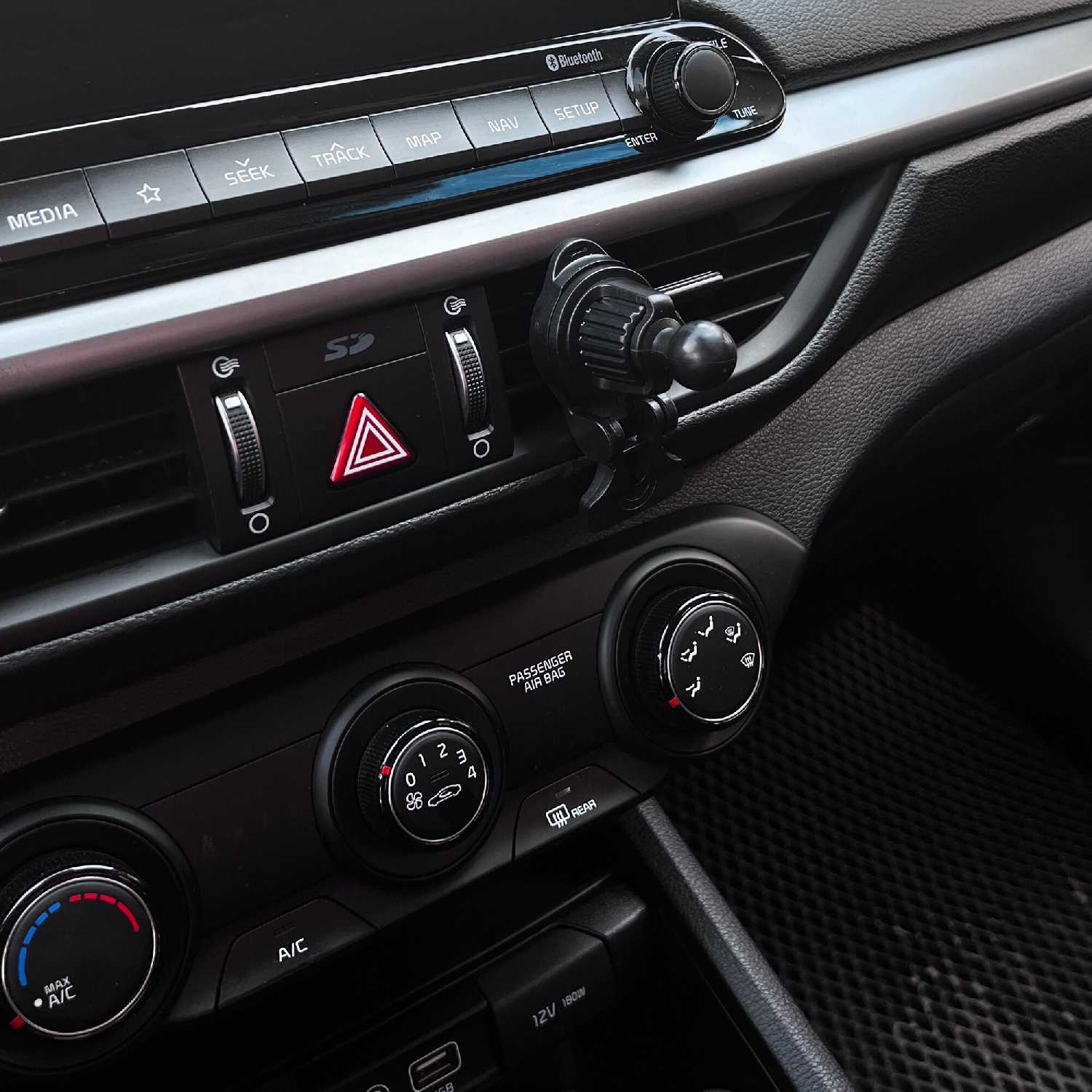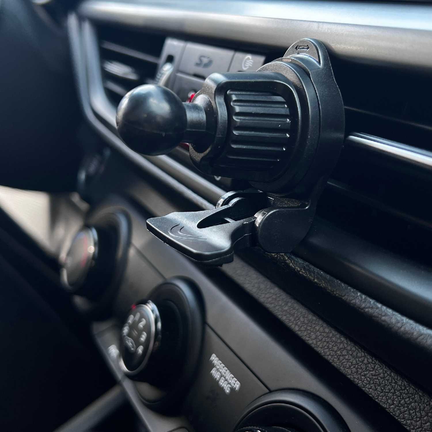 - + Прикрепили на воздуховод, держится хорошо.Сначала думал, что не подойдет, но на самом деле держатель отлично встал в вентиляцию. Упор помогает надежно фиксировать телефон, и он не болтается во время движения. Крепление выглядит крепким, и телефон держится уверенно.
