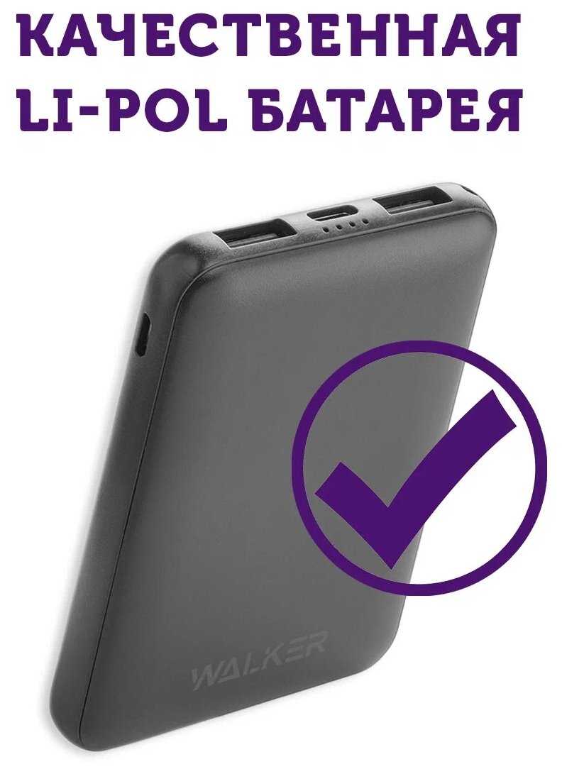 Отзывы о Портативный внешний аккумулятор 5000 mAh, разъемы Type-C, microUSB, USB, WALKER, WB-305