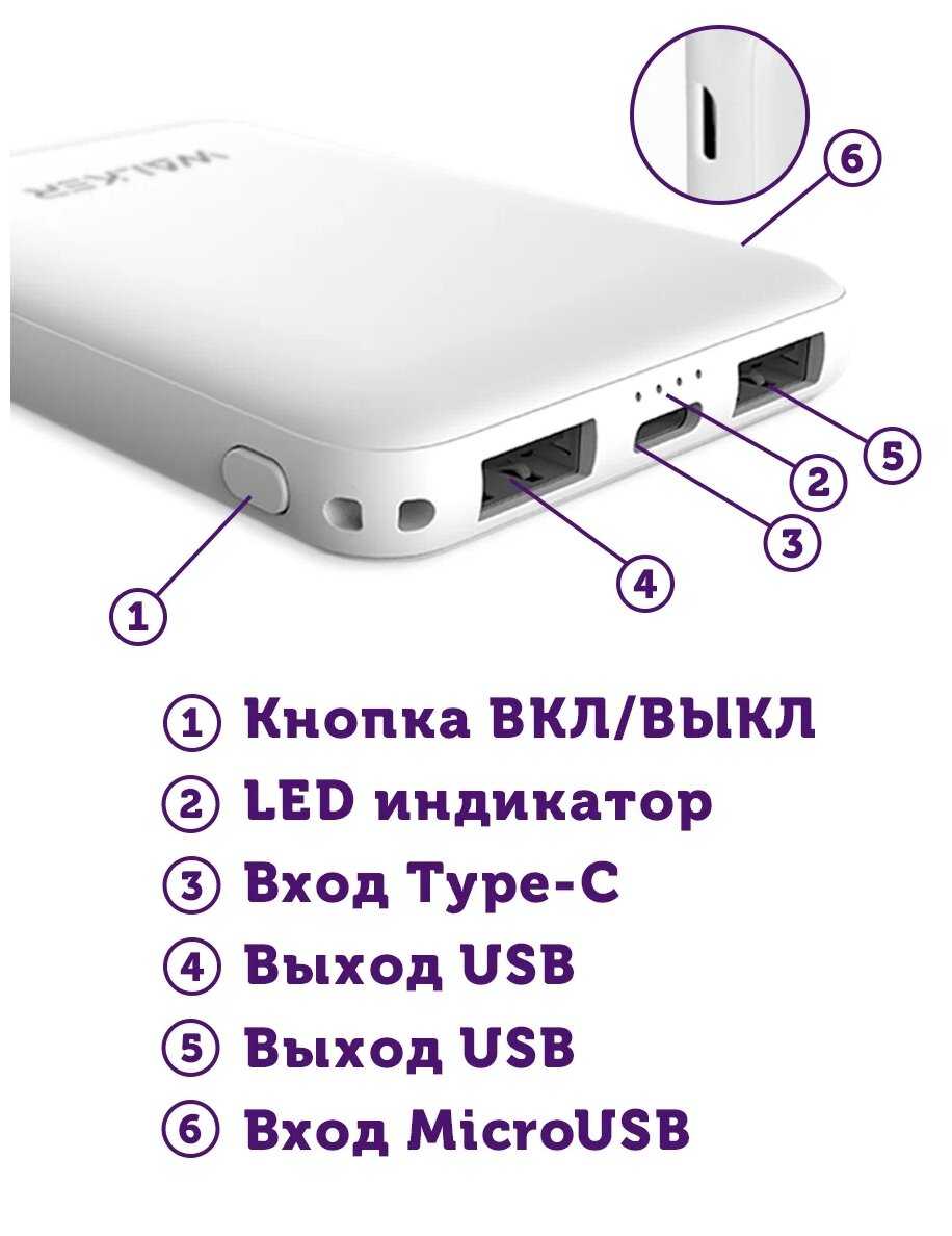 Отзывы о Портативный внешний аккумулятор 5000 mAh, разъемы Type-C, microUSB, USB, WALKER, WB-305