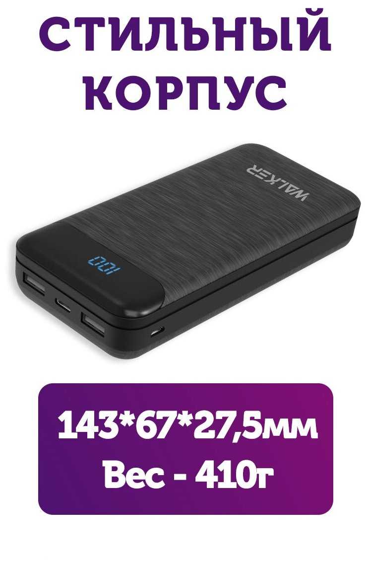 Отзывы о Портативный внешний аккумулятор 20000 mAh, разъемы Type-C, microUSB, USB, WALKER, WB-525