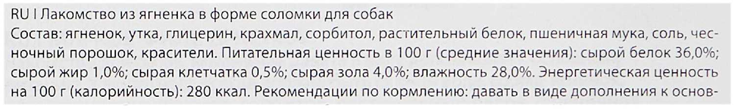 Состав : | ягненок, утка, глицерин, крахмал, сорбитол, растительный белок, пшеничная мука, соль, чесночный порошок, содержит разрешенные ЕС красители |