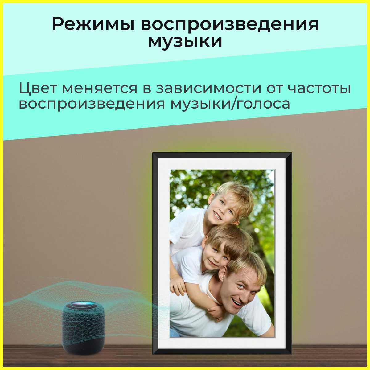 Цветная подсветка подстраивается под цветовой фон фотографии.