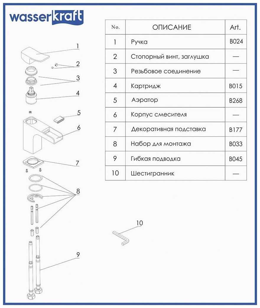 Искал каскадный смеситель на раковину, так как семье нравится такой вид излива (он и правда красивый), остановился на фирме WasserKraft по ценовому признаку, такие же смесители от брендов «на слуху» стоят в разы дороже. Когда привезли смеситель - был приятно удивлен весом смесителя (первый признак хорошего смесителя). В коробке все как положено, смеситель в мешочке лежит, защищен от ударов, все необходимое для установки смесителя так же в коробке. Монтируется легко, даже если делаешь это в первый раз - все получится.