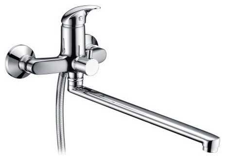 - + хороший, качественный, тяжелый смеситель, идеально сочетается со смесителем той же фирмы для раковины, из этих соображений и брали, длинный...