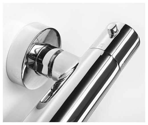 - + Кран удобный, бесшумный, удобно что не надо думать о регулировке температуры, недорогая цена за качественный кран с термостатом, красивый