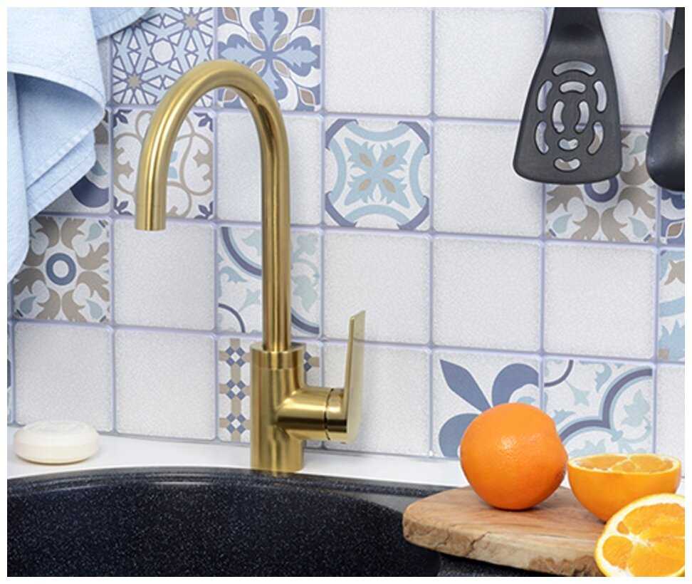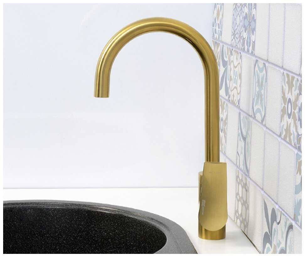Качественная латунь. Массивная конструкция смесителя (1098 гр, без арматурыподключения). Керамический картридж, плавно работающий, без лишних усилий. Длинный излив, что позволяет мыть большие кастрюли и набирать воду в бутылки. Из носика вода не разбрызгивается.
