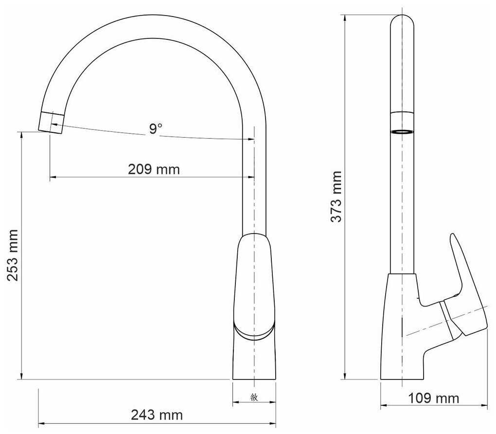 - высота излива: 269 мм.