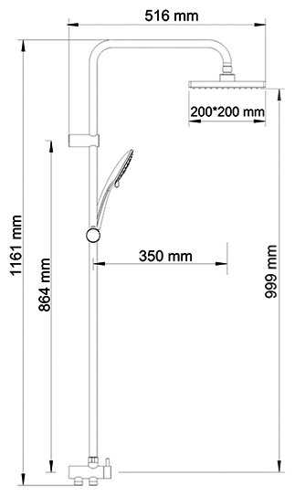 | Дополнительная информация : | высота стойки для душа: 1161 мм, длина верхнего душа: 200 мм, ширина верхнего душа: 200 мм |