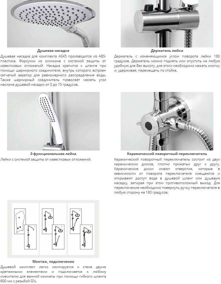 | Особенности : | антиизвестковое покрытие, держатель душевой лейки, защита от скручивания, система быстрого монтажа |