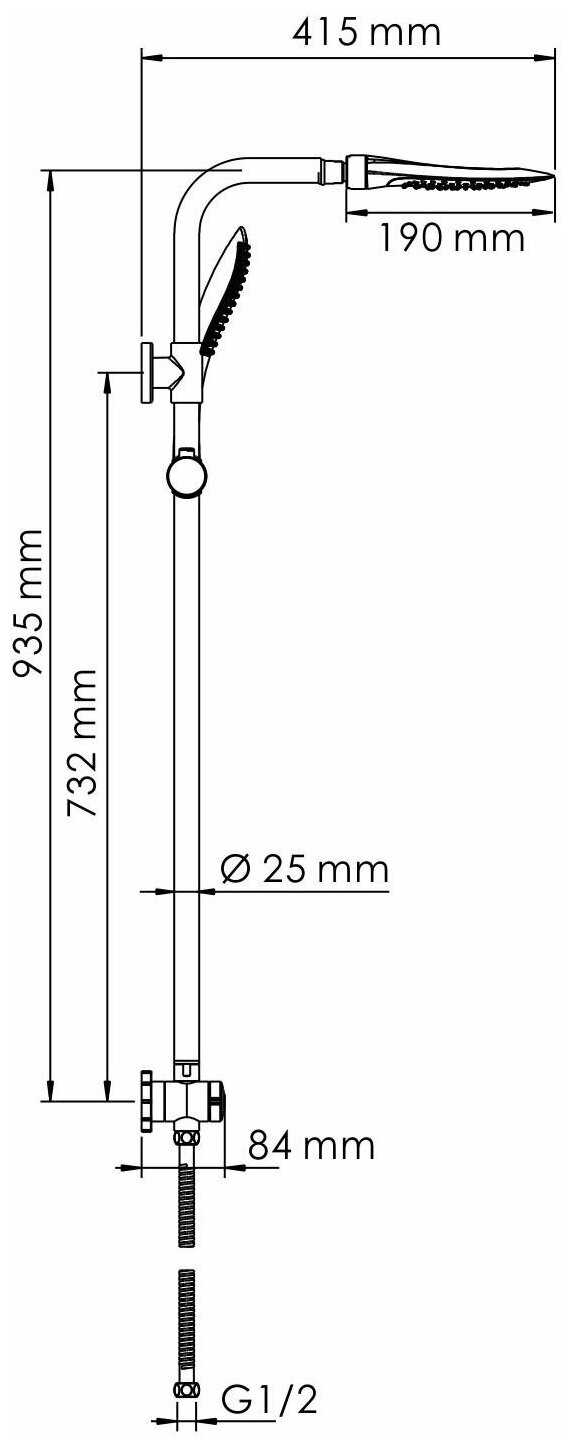 | Дополнительная информация : | высота стойки для душа: 980 мм, длина верхнего душа: 190 мм, ширина верхнего душа: 246 мм |