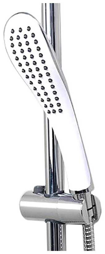 | Комплектация : | верхний душ, держатель лейки, душевая стойка, лейка, смеситель, шланг |