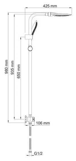 Дополнительная информация : | высота стойки для душа: 980 мм, длина верхнего душа: 190 мм, ширина верхнего душа: 246 мм |