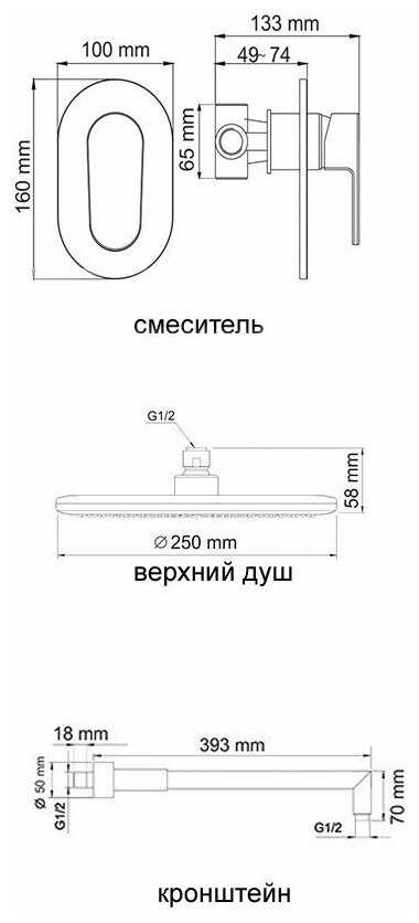 | Форма верхнего душа : | круглая |
