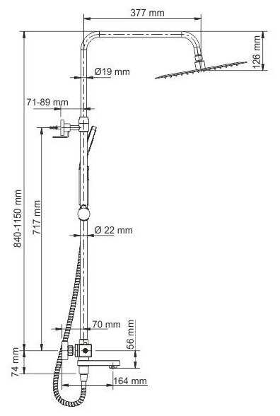 | Комплектация : | верхний душ, держатель лейки, душевая стойка, душевая штанга, излив для набора воды, кронштейн, лейка, смеситель, шланг, эксцентрик |