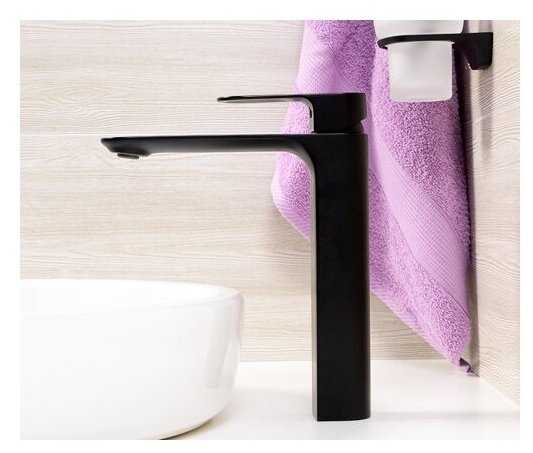 - + Стильный дизайн, матовый, высокий - хорош для накладной раковины