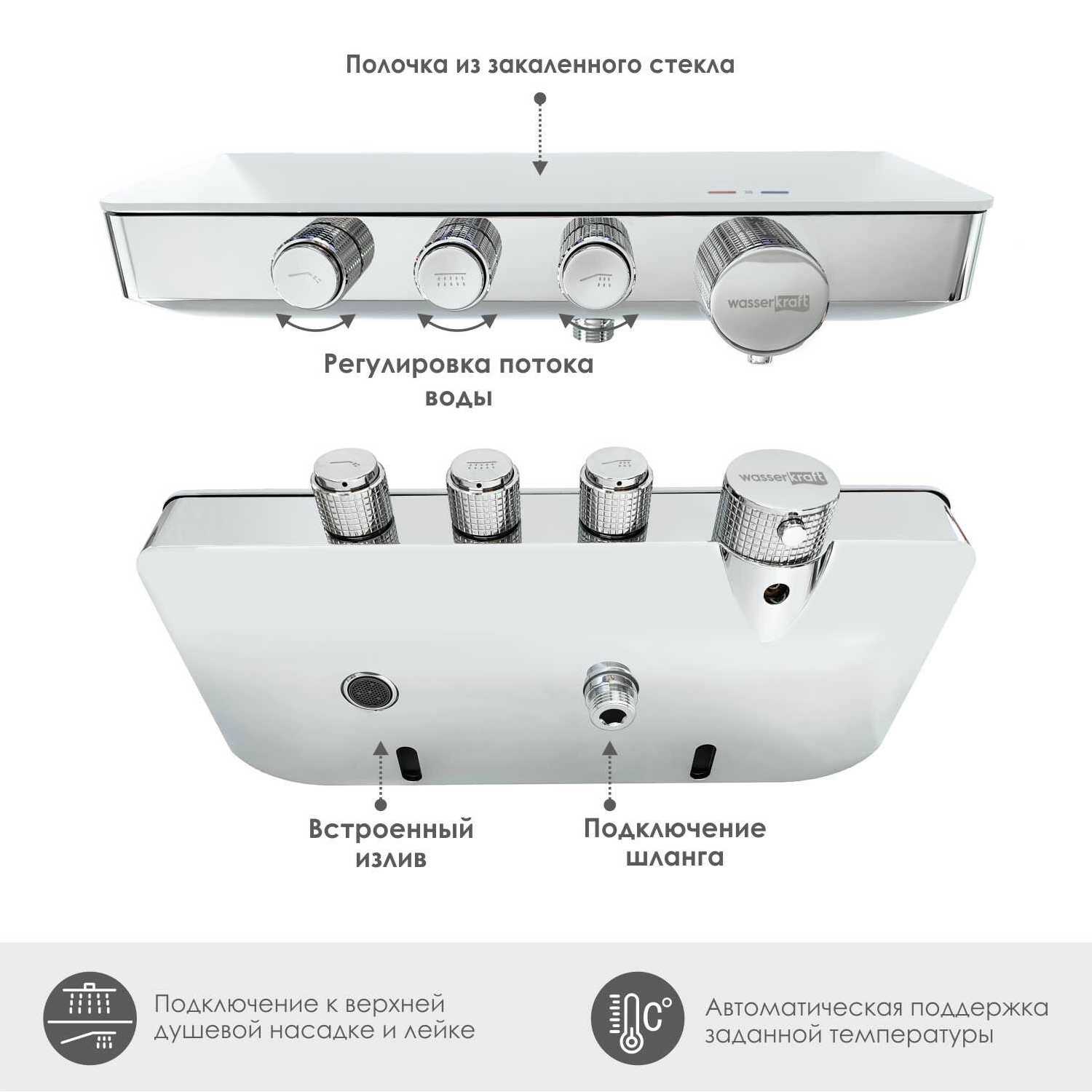 Характеристи WasserKRAFT Thermo Смеситель термостатический для ванны и душа (8599)