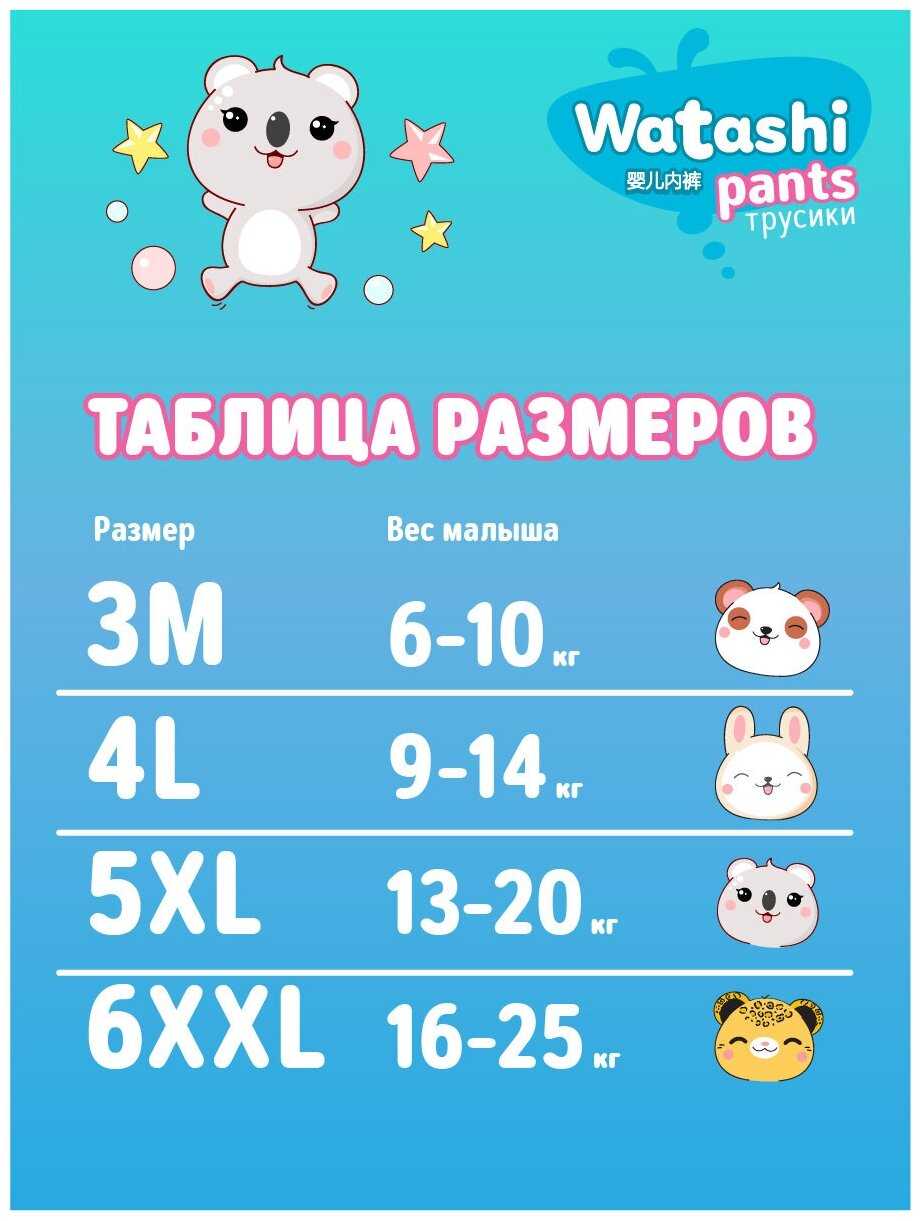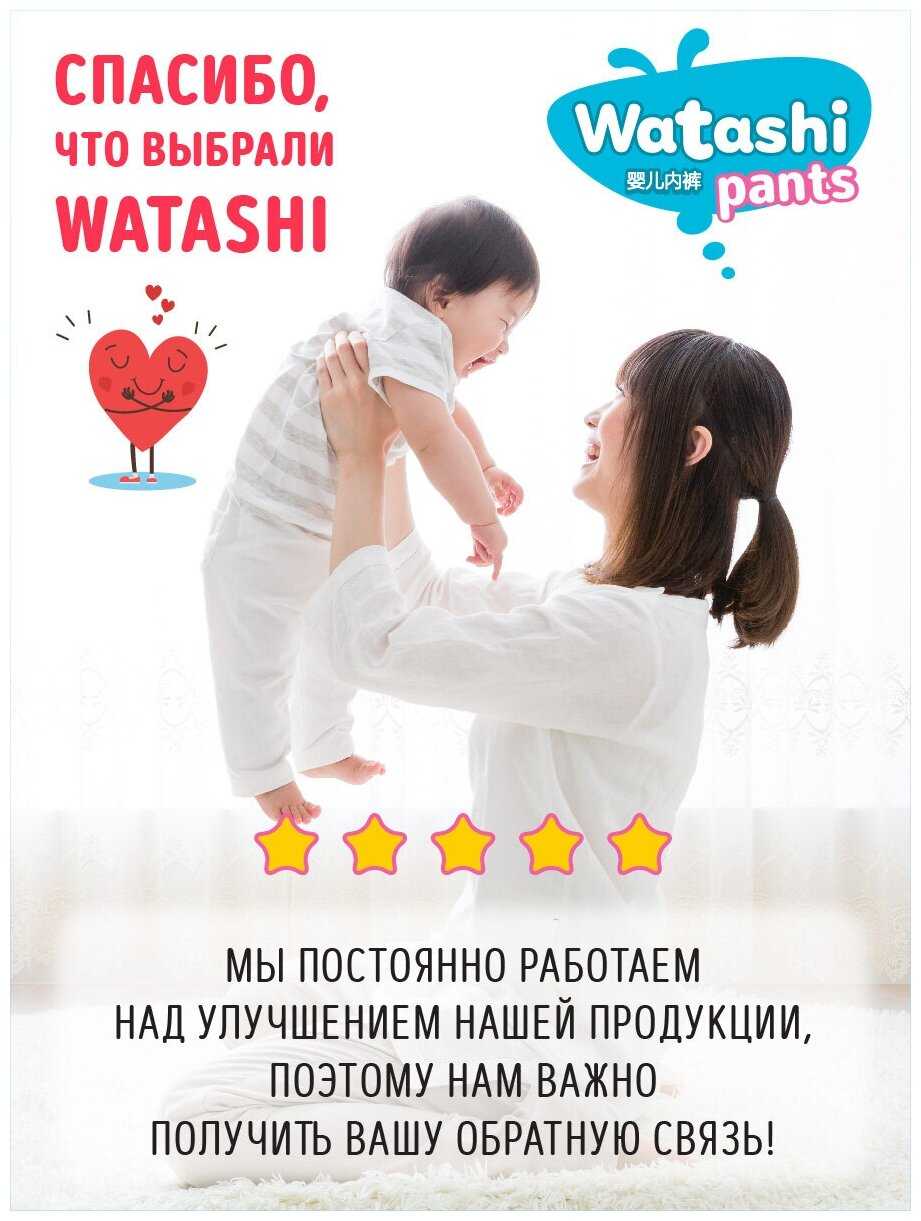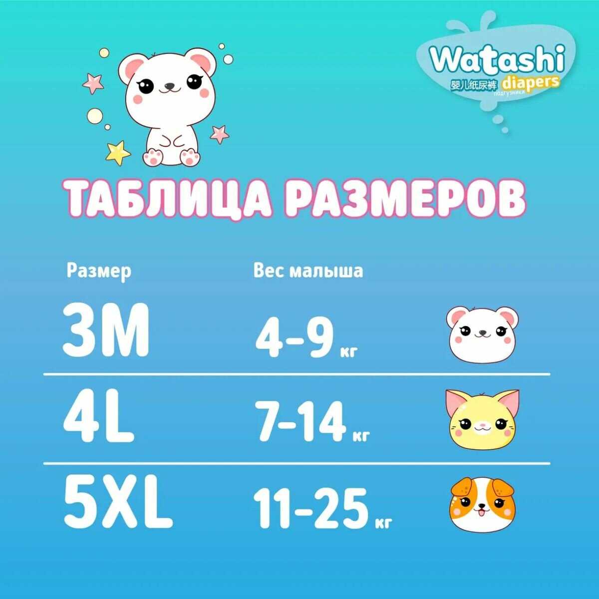 Трусики Watashi имеют тенденцию большемерить по сравнению с другими брендами. Многие пользователи отмечают, что размер, соответствующий весу ребенка 9-10 кг (M), может хорошо подойти ребенку весом 12 кг (L). Это означает, что при выборе можно ориентироваться на нижнюю границу весового диапазона, указанного на упаковке. Такая посадка обеспечивает более свободное облегание без потери функциональности и без протеканий. -